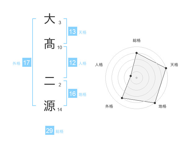 大髙 二源さんを姓名の画数から五運を鑑定