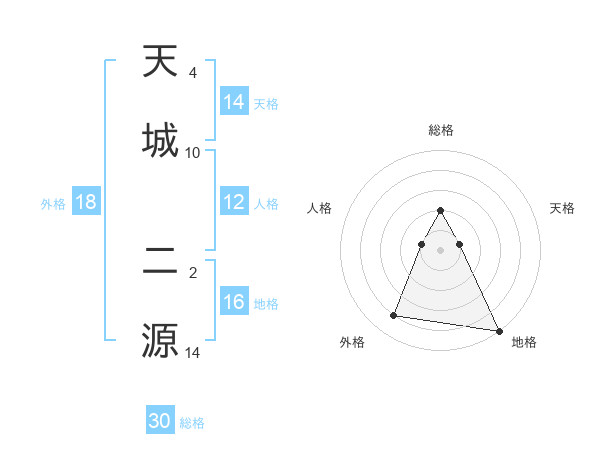 天城 二源さんの総格は30画の2点!