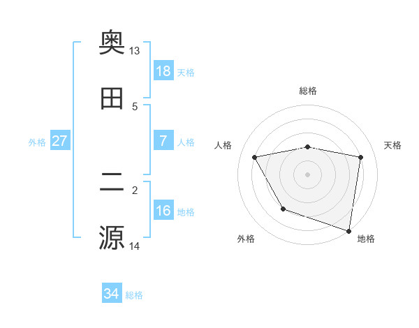 奥田 二源さんの地格は16画の5点!