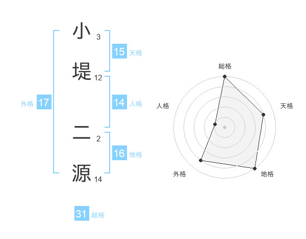 小堤 二源さんの総格は31画の5点!