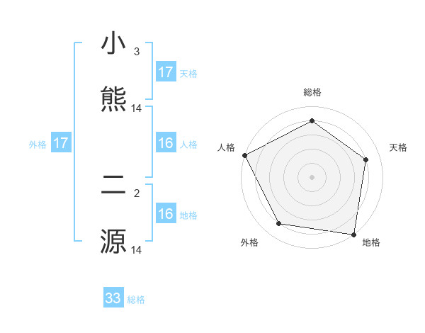 小熊 二源さんの天格は17画の4点!