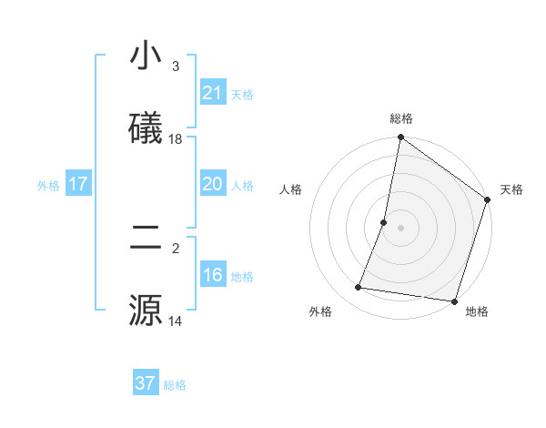 小礒 二源さんの総格は37画の5点!