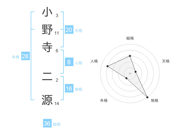 小野寺 二源さんを姓名の画数から五運を鑑定