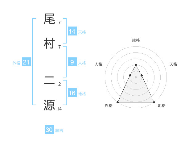 尾村 二源さんの外格は21画の5点!