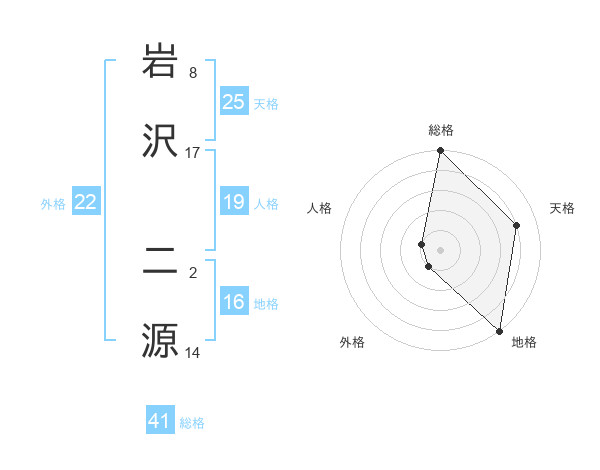 岩沢 二源さんを姓名の画数から五運を鑑定