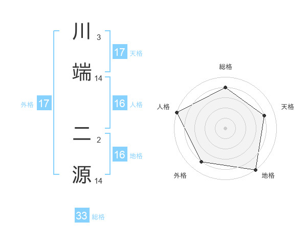 川端 二源さんの外格は17画の4点!