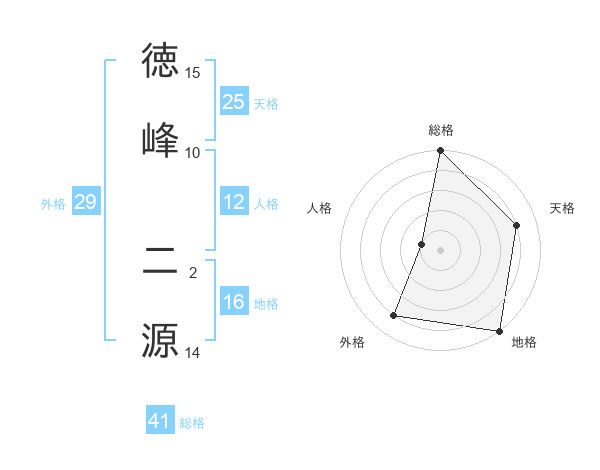徳峰 二源さんの天格は25画の4点!