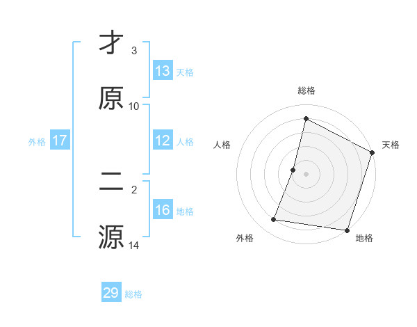 才原 二源さんの天格は13画の5点!