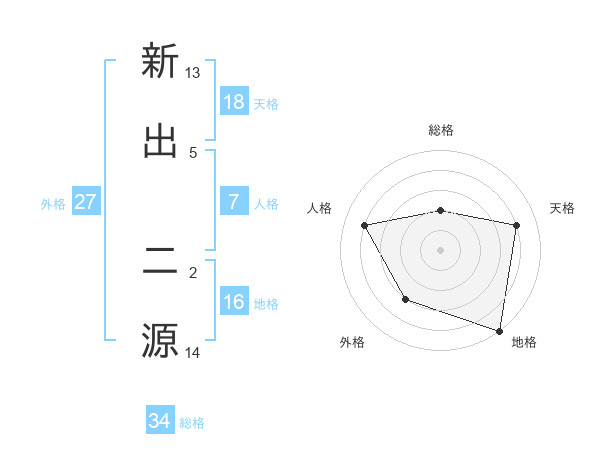 新出 二源さんの総格は34画の2点!