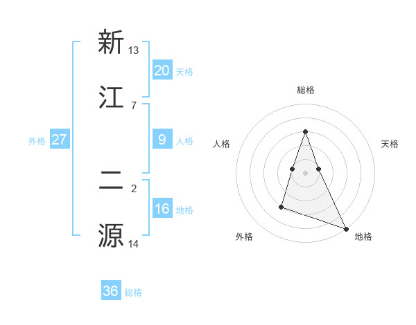 新江 二源さんの天格は20画の1点!