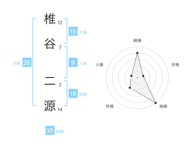椎谷 二源さんを姓名の画数から五運を鑑定