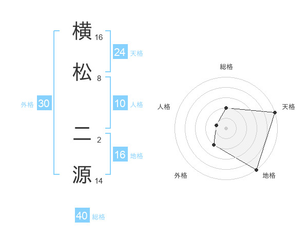 横松 二源さんの総格は40画の2点!