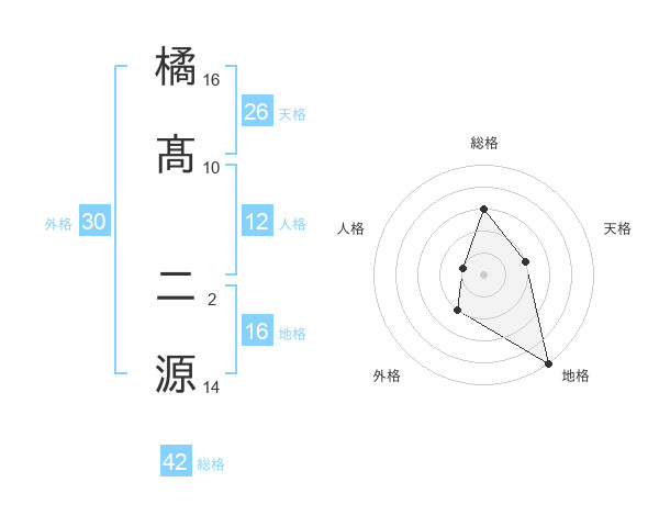 橘髙 二源さんを姓名の画数から五運を鑑定