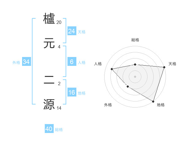 櫨元 二源さんの天格は24画の5点!