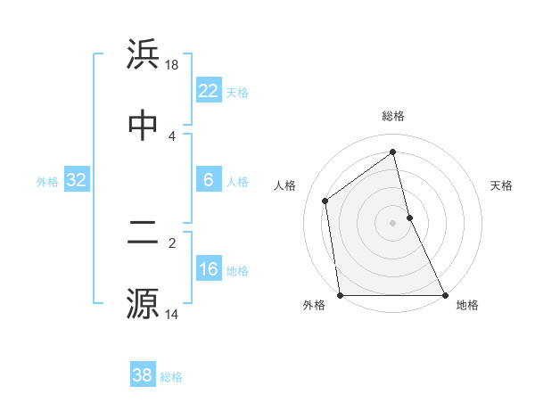 浜中 二源さんの総格は38画の4点!