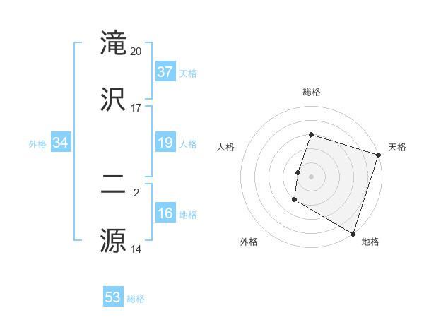 滝沢 二源さんを姓名の画数から五運を鑑定