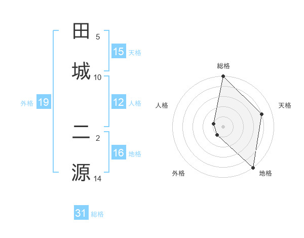 田城 二源さんの総格は31画の5点!