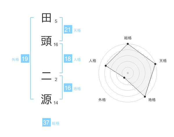田頭 二源さんの総格は37画の5点!