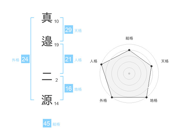 真邉 二源さんの総格は45画の4点!