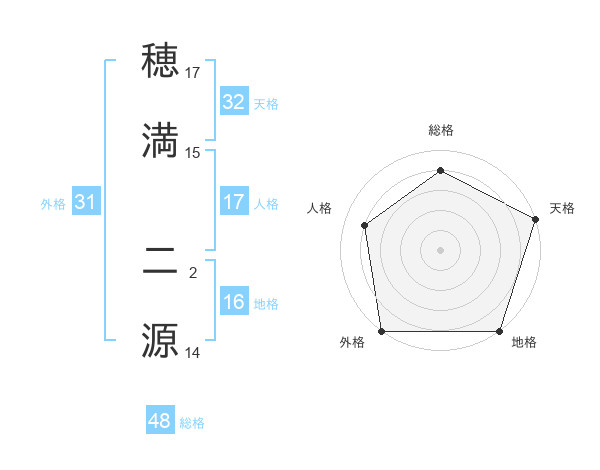 穂満 二源さんの天格は32画の5点!