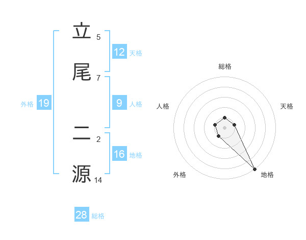 立尾 二源さんの地格は16画の5点!