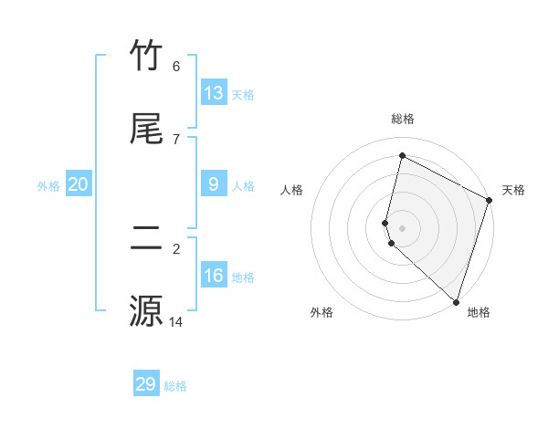 竹尾 二源さんを姓名の画数から五運を鑑定