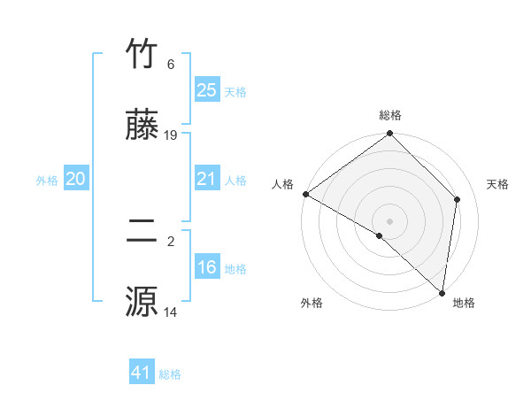 竹藤 二源さんを姓名の画数から五運を鑑定