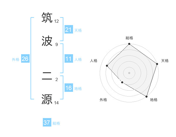 筑波 二源さんの総格は37画の5点!