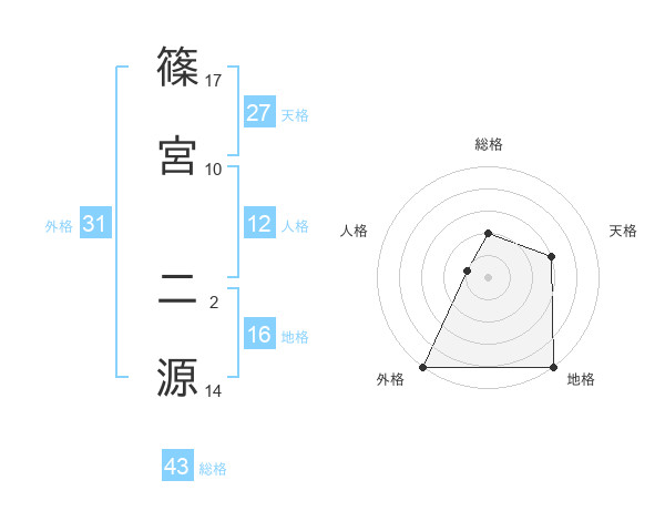 篠宮 二源さんの外格は31画の5点!