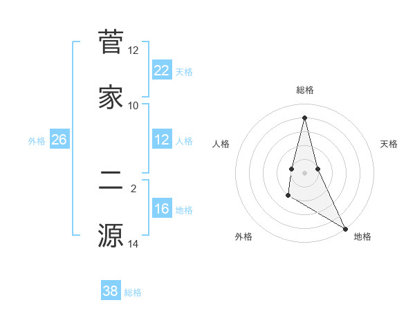 菅家 二源さんの総格は38画の4点!