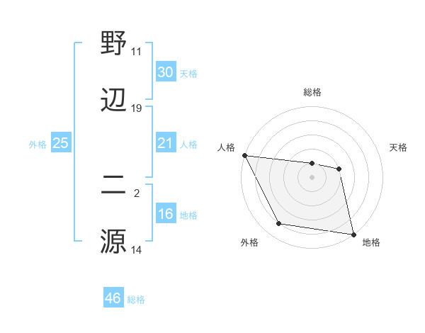野辺 二源さんの総格は46画の1点!