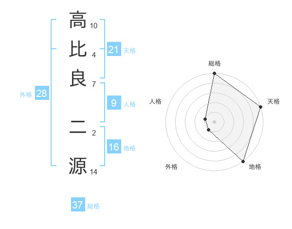 高比良 二源さんの総格は37画の5点!