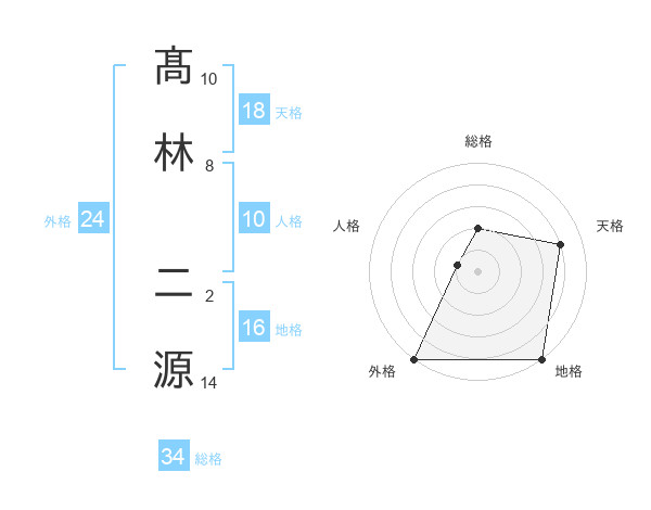 髙林 二源さんの総格は34画の2点!
