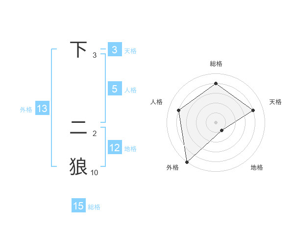 下 二狼さんの地格は12画の1点!