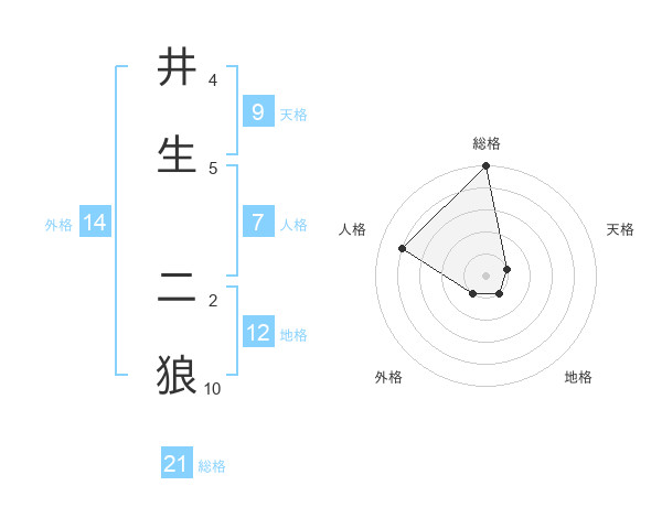 井生 二狼さんの総格は21画の5点!