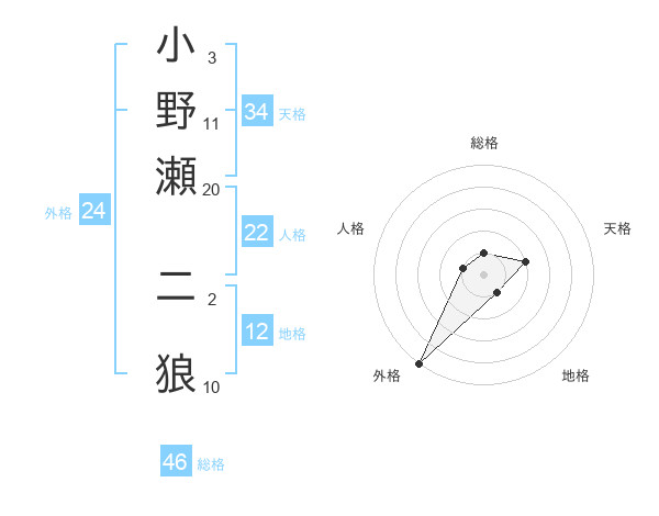 小野瀬 二狼さんを姓名の画数から五運を鑑定