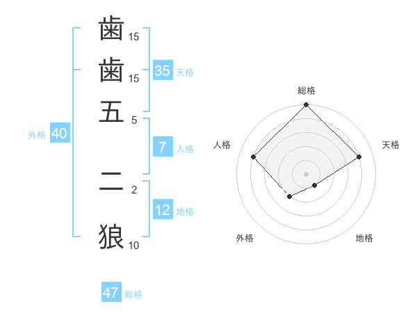 歯歯五 二狼さんの総格は47画の5点!