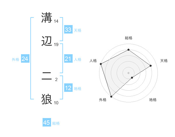 溝辺 二狼さんの総格は45画の4点!