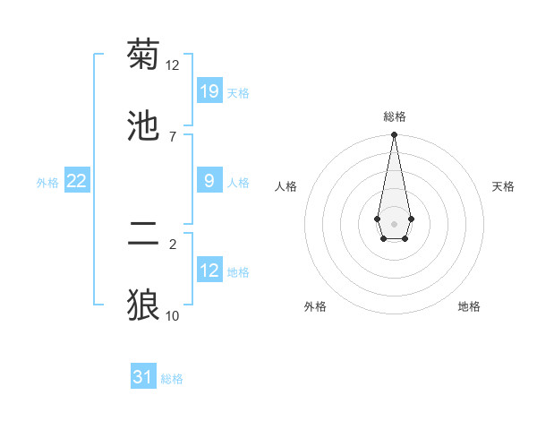 菊池 二狼さんを姓名の画数から五運を鑑定