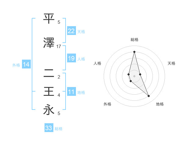 平澤 二王永さんを姓名の画数から五運を鑑定