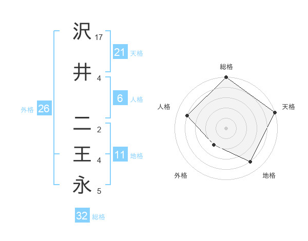 沢井 二王永さんを姓名の画数から五運を鑑定