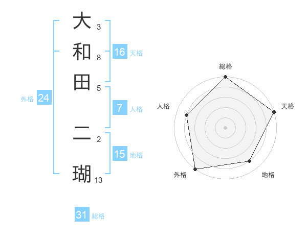 大和田 二瑚さんを姓名の画数から五運を鑑定