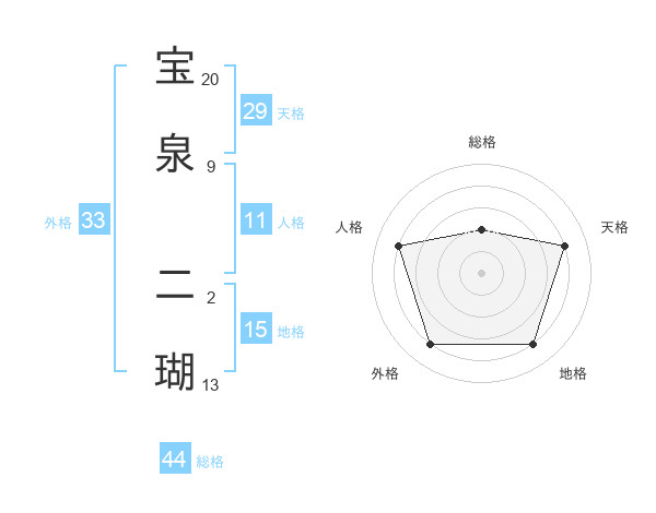 宝泉 二瑚さんを姓名の画数から五運を鑑定