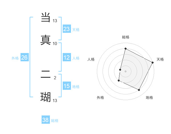 当真 二瑚さんを姓名の画数から五運を鑑定