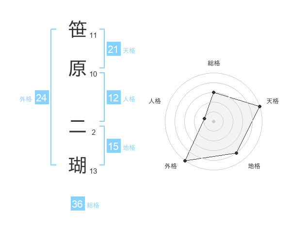 笹原 二瑚さんを姓名の画数から五運を鑑定