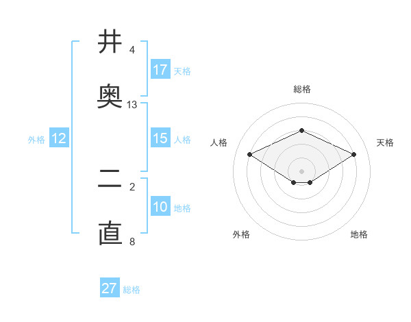 井奥 二直さんの総格は27画の3点!