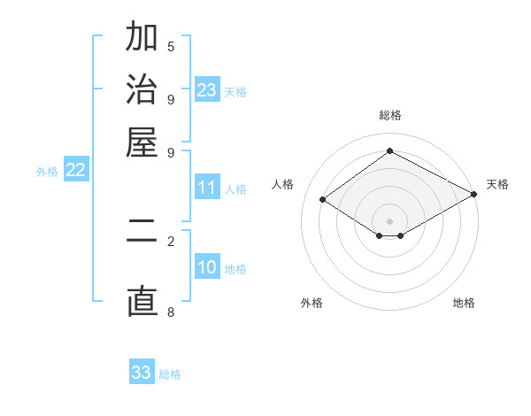 加治屋 二直さんを姓名の画数から五運を鑑定