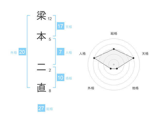 梁本 二直さんの総格は27画の3点!