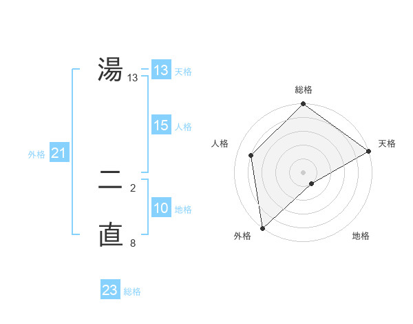 湯 二直さんの天格は13画の5点!