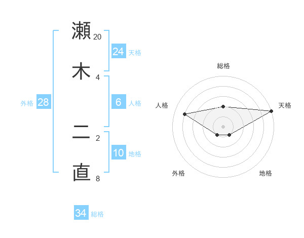 瀬木 二直さんの総格は34画の2点!
